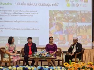 ?️ ภายในงานเริ่มต้นด้วยการเสวนาในหัวข้อ "การขจัดความยากจนและการพัฒนาคุณภาพชีวิตอย่างยั่งยืน"